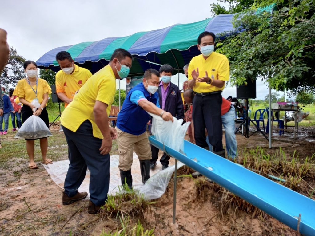 เมื่อวันที่ 9 กันยายน  2564  เวลา 09.00 น. นายศรี  ศรีพุทธรินทร์ นายอำเภอมหาชนะชัย เป็นประธานในกิจกรรมการปล่อยพ่อแม่พันธุ์ปลานิลสู่แหล่งน้ำ จำนวน 3,000 ตัว และมอบพันธุ์ปลานิลให้กับเกษตรกร จำนวน 4,000 ตัว ณ ศูนย์เรียนรู้โคกหนองนาบ้านยางน้อย หมู่ 3 ต.บึงแก อ.มหาชนะชัย จ.ยโสธร ตามโครงการน้อมรำลึกพระคุณพ่อของแผ่นดิน(ร.9)ปลานิลสินในน้ำ ซึ่งวิทยาลัยเกษตรและเทคโนโลยียโสธร ได้รับมอบหมายจากสำนักงานคณะกรรมการการอาชีวศึกษา ให้ดำเนินการ  โดยในกิจกรรมดังกล่าว  นายจักรภพ มงคลสวัสดิ์ พร้อมคณะครูและบุคลากรทางการศึกษา ได้นำพันธุ์ปลานิลไปร่วมกิจกรรม นอกจากนี้ยังได้รับเกียรติจาก พัฒนาการอำเภอมหาชนะชัย  ผู้อำนวยการสถานีประมงน้ำจืดยโสธร และผู้นำชุมชน เข้าร่วมกิจกรรมดังกล่าว